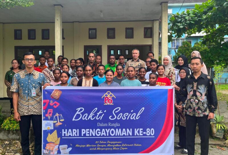 MANOKWARI, Kumparanpapua.com  – Dalam rangka Peringatan Hari Pengayoman Ke-80 Tahun 2025, Kantor Wilayah Kementerian Hukum Papua Barat (Kanwil Kemenkum Pabar) menggelar kegiatan bakti sosial bertempat di Sekolah Pendidikan Guru Jemaat (SPGJ) Lahai Roi dan Yayasan Pesantren Hidayatullah Kabupaten Manokwari Provinsi Papua Barat, Kamis (10/07/2025).
