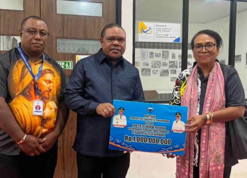 TELUK WONDAMA, Kumparanpapua.com — Pemerintah Kabupaten (Pemkab) Manokwari menunjukkan komitmen penuh dalam menyukseskan perayaan 1 Abad Peradaban Orang Papua yang akan digelar di Teluk Wondama tahun 2025. Sebagai wujud dukungan nyata, Pemkab Manokwari menyerahkan bantuan dana sebesar Rp1 miliar kepada panitia pelaksana kegiatan tersebut.