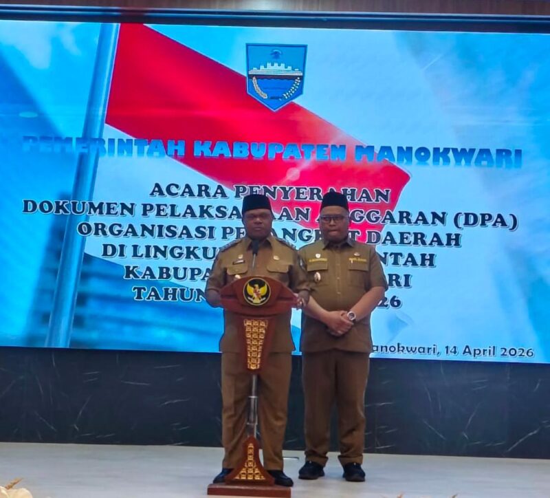Penegasan tersebut disampaikan saat penyerahan Dokumen Pelaksanaan Anggaran (DPA) kepada seluruh Organisasi Perangkat Daerah (OPD) di lingkungan Pemkab Manokwari, Selasa (14/4/2026).