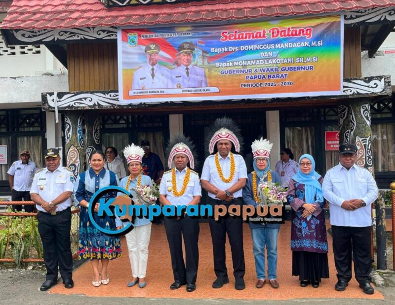 MANOKWARI, Kumparanpapua.com – Bupati Manokwari, Hermus Indou, bersama istrinya Febelina Indou, menyambut kedatangan Gubernur dan Wakil Gubernur Papua Barat, Dominggus Mandacan dan Mohammad Lakotani di bandara Rendani, Rabu (5/2/2025).