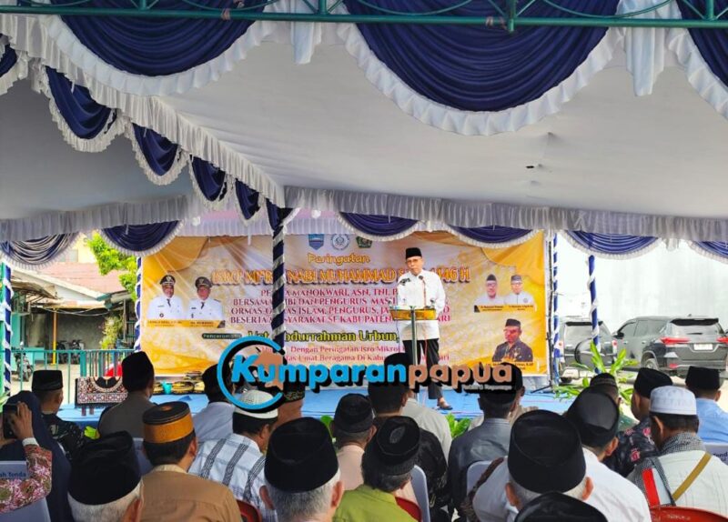 MANOKWARI , KumparanPapua.com – Wakil Bupati Manokwari, Edi Budoyo, menghadiri peringatan Isra Mikraj Nabi Muhammad SAW 1446 H yang digelar di Masjid Al-Falah Wosi AMD, Manokwari, Senin (27/01/2025). Acara ini dihadiri oleh jajaran Pemerintah Kabupaten Manokwari, ASN, TNI-Polri, serta organisasi Islam seperti PHBI, Takmir Masjid Al-Falah, Muslimat NU, PD Aisyiyah, dan pengurus masjid se-Manokwari.