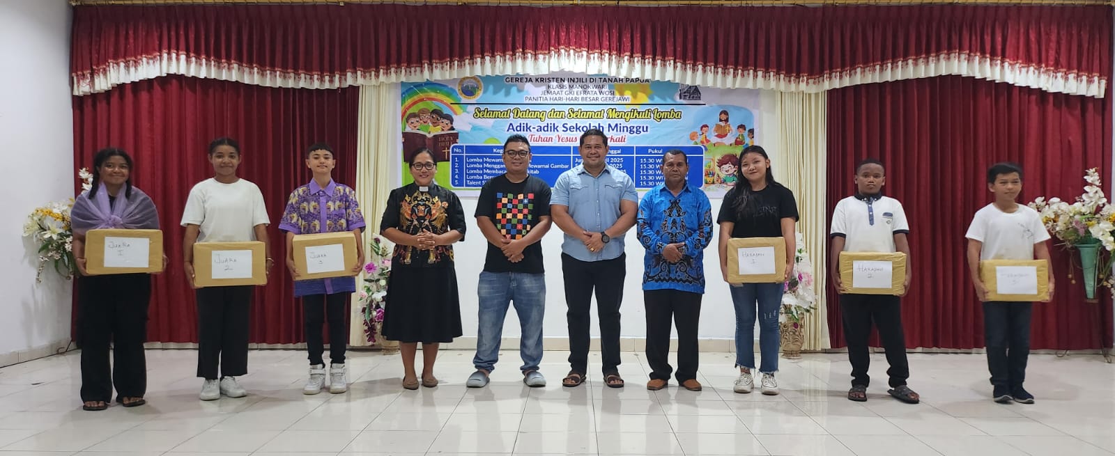 Acara berlangsung meriah dan penuh sukacita, dengan partisipasi anak-anak Sekolah Minggu dari berbagai kategori usia. Selain menjadi ajang untuk mengekspresikan bakat dan kreativitas, kegiatan ini juga merupakan penutup dari rangkaian lomba yang diselenggarakan oleh PHBG Jemaat GKI Efrata Wosi dalam rangka memperingati Hari Paskah Tahun 2025.