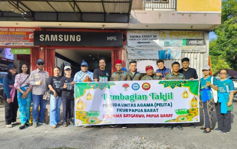 MANOKWARI, Kumparanpapua.com – Satuan Tugas Wilayah (Satgaswil) Papua Barat Densus 88 Antiteror Polri bersama Pemuda Lintas Agama (PELITA) FKUB Papua Barat melaksanakan kegiatan pembagian takjil kepada masyarakat di lampu merah Makalo, Kabupaten Manokwari, bagi warga yang sedang menjalankan ibadah puasa di bulan suci Ramadan, Jumat (6/3/2026).