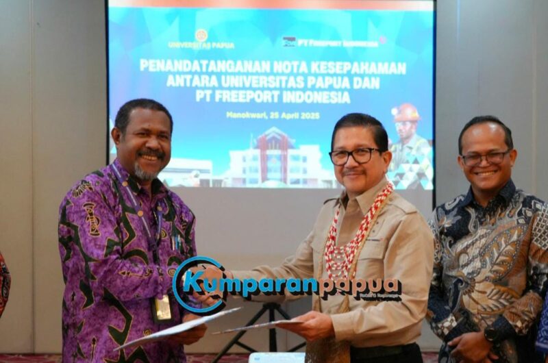 MANOKWARI, Kumparanpapua.com – PT Freeport Indonesia (PTFI) dan Universitas Papua (UNIPA) melakukan penandatanganan Nota Kesepahaman atau MoU terkait program pengembangan bidang pendidikan, pengajaran, pelatihan mahasiswa, serta tenaga pendidik, penelitian dan pengabdian kepada masyarakat, hingga penyebaran informasi.