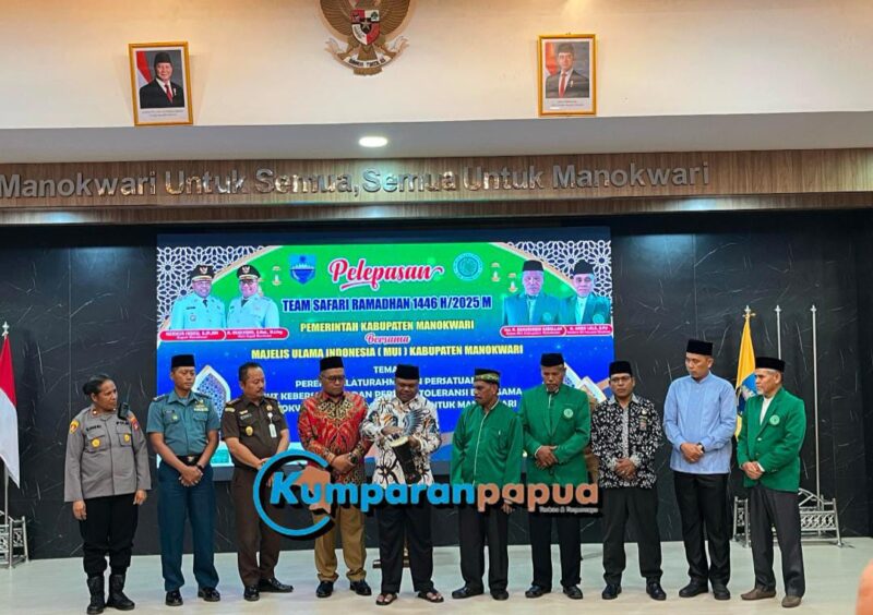 MANOKWARI, Kumparanpapua.com – Pemkab Manokwari bersama Majelis Ulama Indonesia Kabupaten Manokwari melepas Team Safari Ramadhan 1446 H/2025 M di Aula Sasana Kantor Bupati Manokwari, Senin (10/3/2025).